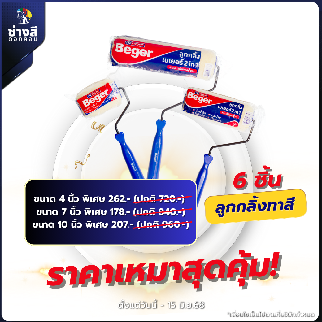 แพ็ค 6 ชิ้น Beger (เบเยอร์) ลูกกลิ้งเบเยอร์ 2IN1 กลิ้งง่าย ขนนุ่ม ไม่ทิ้งรอย เรียบเนียน ขนาด 4,7,10 นิ้ว